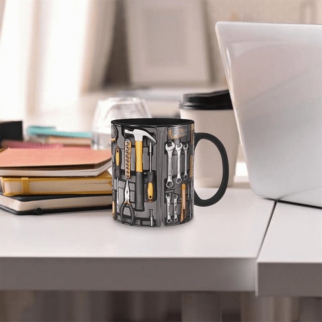 - Hyper-Real Tool Case Design: The mug’s surface mimics a fully stocked tool kit—complete with a hammer, screwdrivers, pliers, tape measure, and tiny hardware details. It looks like a mini toolbox you can actually drink from, serving up big “handyman energy” in every sip.